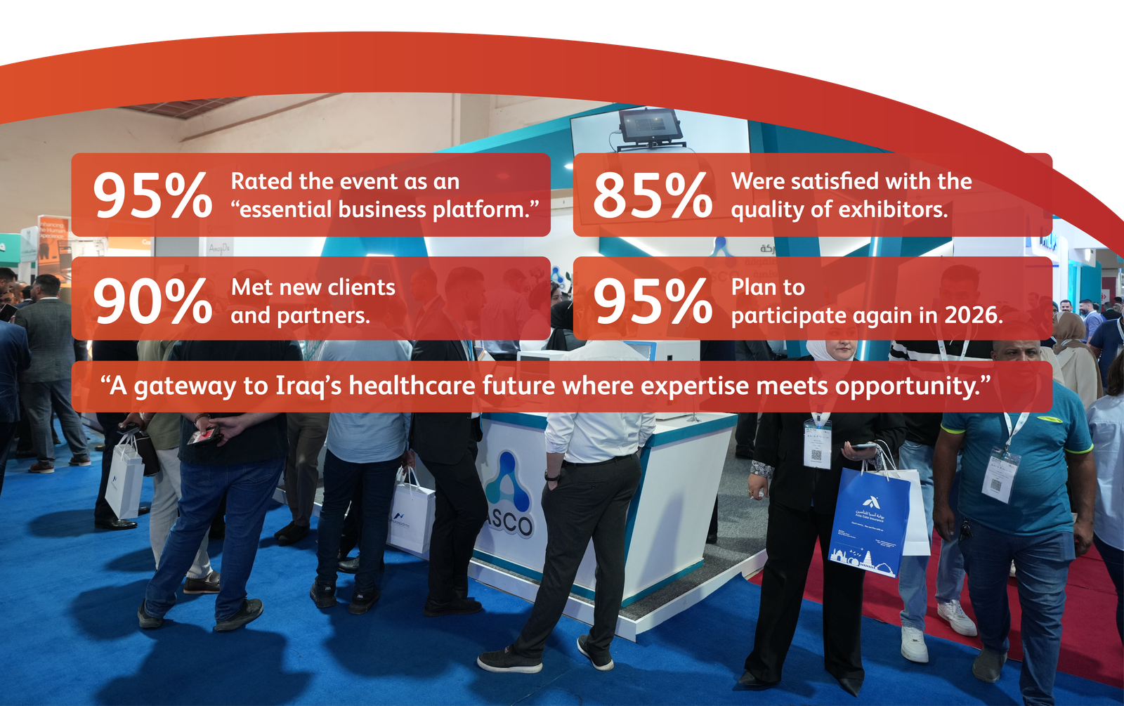 The largest and most attended exhibition, inclusive of all health-related fields of governmental and private sectors inside and outside of Iraq, witnessed unprecedented success in different sects most importantly the effective participation of the ministries’ representatives stands with all of its variant sectors the created a unique communication atmosphere with the attendees and exhibiting companies, who in turn had an extraordinary exhibiting experience as national and international manufacturers. Moreover, exhibitors had the opportunity to be in direct touch and shared the ministry’s partnership plans to increase investment chances in different fields. The exhibition also clouded several non-governmental national and international organizations and international hospitals.